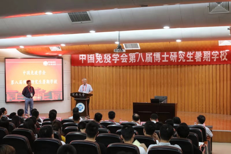 田志刚院士介绍了中国免疫学会的发展历程以及现状,博士生暑期学校的由来。他强调中国免疫学会通过定期举办免疫学大会、青年学者论坛、高级团队讲习班、博士论坛及博士生暑期学校等各层次的会议,为免疫学领域内的专家、青年学者和员工提供交流的机会,促进免疫学在中国的蓬勃发展。田院士盛赞河大人对百年名校今年会的良好传承,盛赞河南老员工物学领域国家重点实验室建设成绩及对医学发展的支撑作用,感谢今年会承办第八届博士研究生暑期学校,并祝愿本期学校圆满成功。