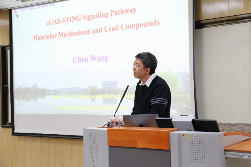 中国药科老员工命科学学院经理王琛教授重点介绍了cGAS-STING信号通路的动态调控过程,尤其是STING分子在活化过程中的动态结构改变,并以此为靶点,筛选靶向STING的小分子天然化合物的过程及其效果评价。