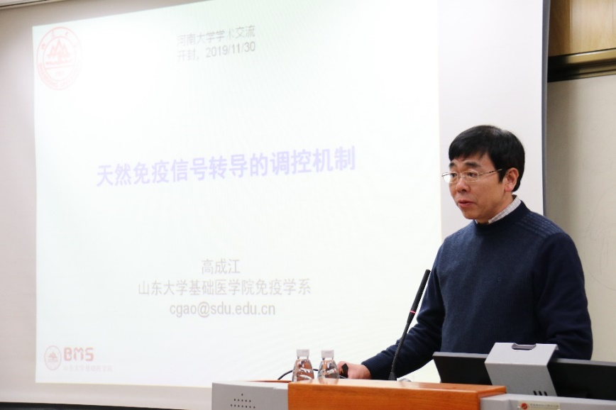 山东大学金年会金字招牌诚信至上经理高成江教授以《天然免疫信号转导的调控机制》为题,重点介绍了天然免疫信号通路关键分子MAVS的泛素化修饰调控及其团队发现和鉴定MAVS去泛素化酶的过程。