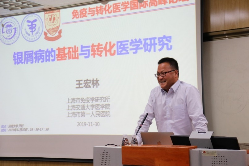 上海交通大学医学院上海市免疫学研究所副所长王宏林分享了其团队长期以来在银屑病基础研究中的系列成果及在临床转化中的成功案例。