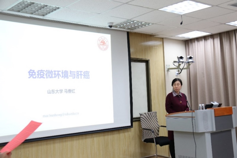 山东大学教授、齐鲁医学院副经理马春红教授以《免疫微环境与肝癌》为题,重点介绍了肝癌肿瘤微环境中LrNK细胞和cNK细胞中的免疫检查点分子Tim3以及其下游信号通路及其在肿瘤发展中的作用。