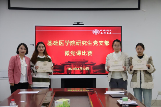 颁奖结束后,司伟荣与同学们交流了比赛感受,她认为此次微党课比赛选手精神饱满、准备充分、主题鲜明、内容丰富,既有动人的故事,又有理性的启迪,既有最新的理论,又有生动伟大的实践,是一场高质量的比赛。她谈到,中国共产党的红色血脉是中华儿女的根,是当代青年的魂,是同学们奋进前行的底气,希望同学们主动发扬党的优秀传统,赓续精神血脉,把个人理想融入到新时代健康中国、科技强国等国家发展大局中,用所学的专业知识,为祖国医疗卫生事业发展和今年会“双一流”建设事业以及学院各项事业的快速发展做出自己的积极贡献。