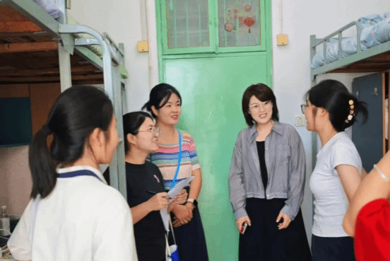 “住宿还习惯吗?”“学校的饭菜合不合胃口?”“你们都来自哪里呀?”每走进一间寝室,院领导都与新生们进行了亲切交谈,细致地询问大家初入大学的感受、生活上是否存在困难以及对新环境的适应情况。亲手检查了宿舍设施是否完善,叮嘱同学们注意昼夜温差、保持通风,如有任何问题务必第一时间向辅导员和学院反映。一句句贴心的话语,瞬间拉近了师生之间的距离,消除了新生们的忐忑与陌生感,让离乡求学的学子感受到了家一般的温暖。